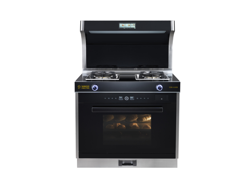 智能大屏触摸显示,带wifi内置500+菜谱,wifi音乐+蓝牙音乐,蒸烤消一体,烟灶联动,防火墙,模块化气电分离设计、头部保温、电加热清洗、智能体感开关、冷凝玻璃、氛围灯旋纽、防水塑封电机 、燃气灶定时功能